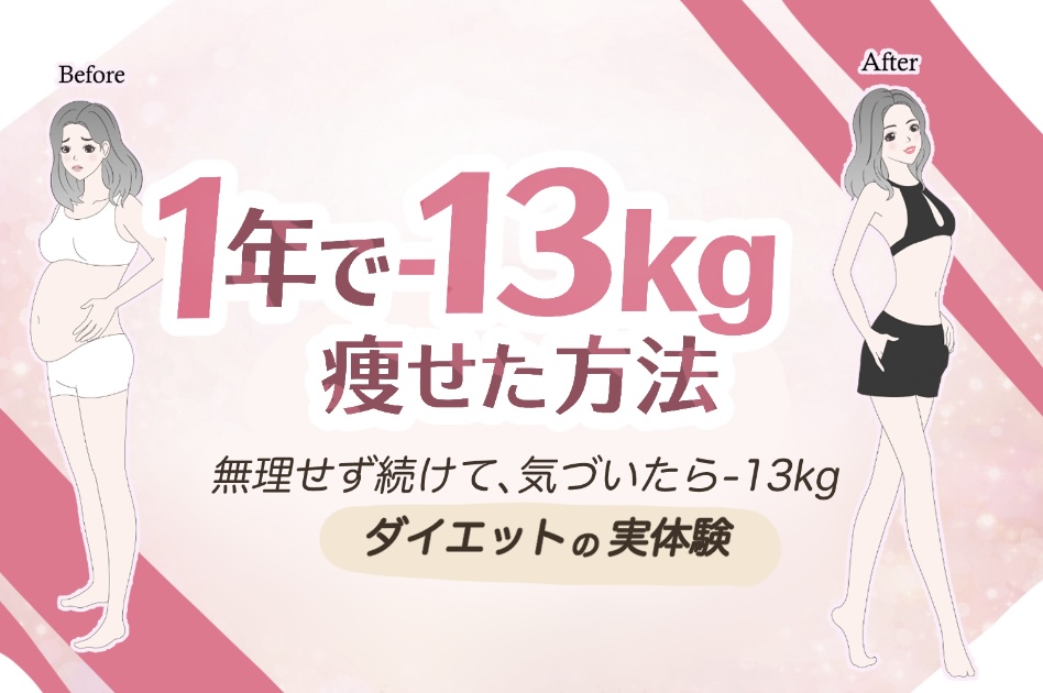 1年で−13kg痩せたダイエット方法をご紹介しました。